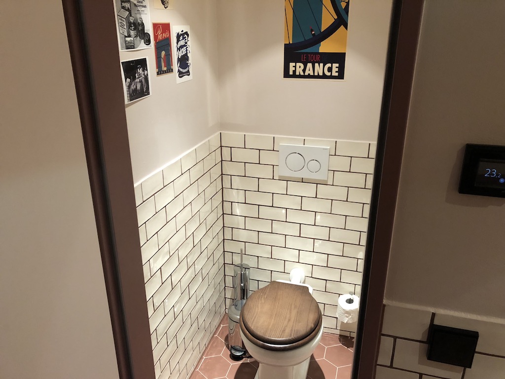 Das Zimmer war, wie das gesamte Hotel, sehr hipp orientiert eingerichtet, was sich durch viele Poster mit lässigen Sprüchen in französischer Sprache und auch ein stylisches Telefon zeigte.