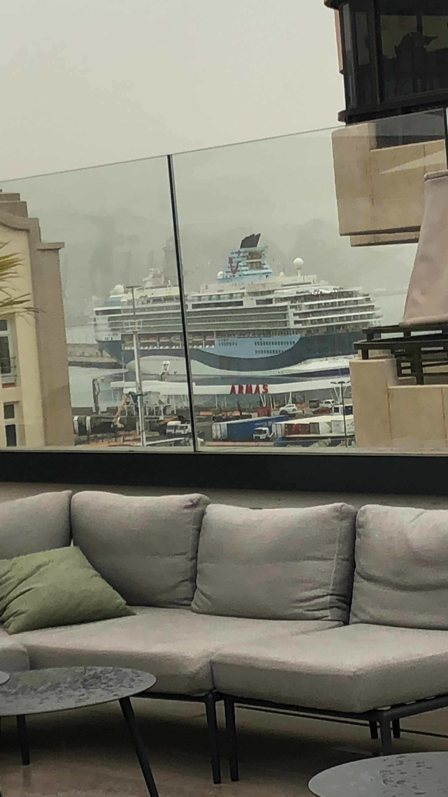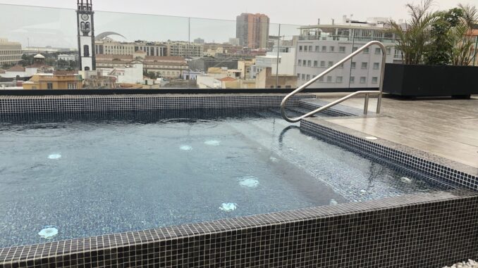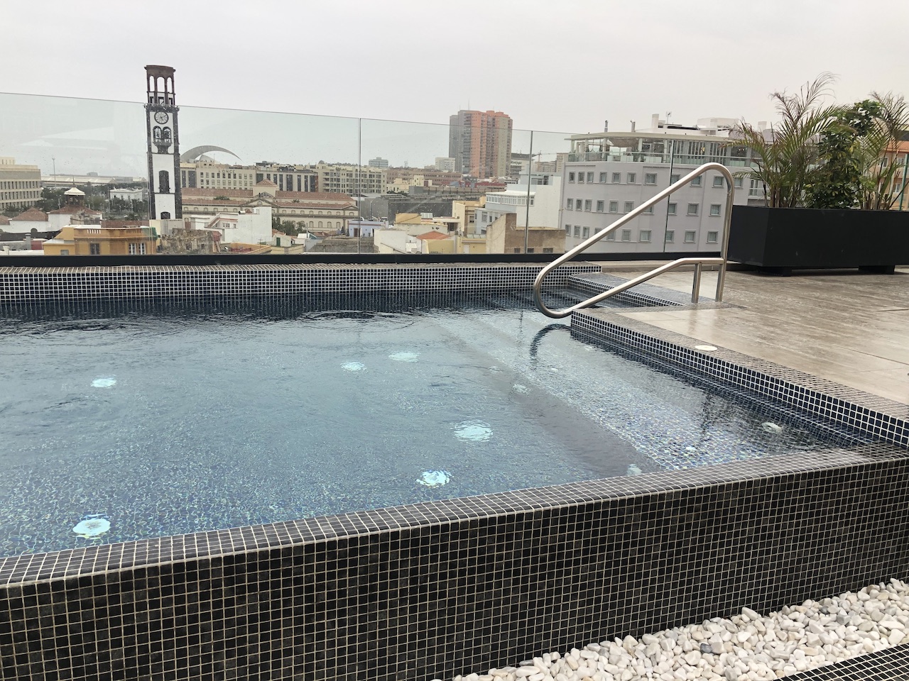 Der Pool ist im obersten Stockwerk gelegen und bietet eine schöne Aussicht auf die Altstadt von Santa Cruz und den Kreuzfahrt-Hafen.