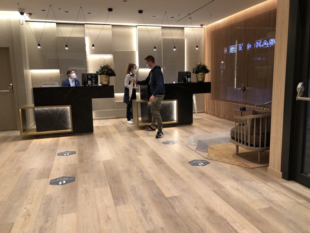 Zum Zeitpunkt unserer Ankunft war der Check-In leer, wir wurden gleich freundlich von der Dame an der Rezeption begrüßt. Bevor wir unserer Zimmerkarten erhielten wurde noch der aktuelle Impfstatus überprüft. Anschließend bekamen wir eine ausführliche Einweisung in die verschiedenen Einrichtungen im Hotel wie Gym, Pool oder des Buffets zum Frühstück.