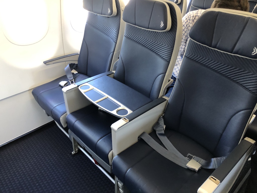 Die Beinfreiheit ist bei Aegean nicht nur in der ersten Reihe herausragend, wobei der Abstand zur Kabinenwand dort wirklich großzügig ist.