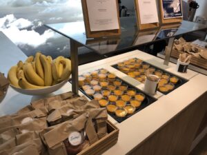 Der Check-In fand in der Halle B in Frankfurt statt, das Abfluggate war bei A38. Auf dem Weg dahin blieb noch genügend Zeit für die Lufthansa Lounge, in der man man leider noch nicht wieder essen und trinken durfte. Der Hunger hielt sich jedoch in Grenzen, ein Kaffee und ein Snack auf die Hand waren beim Verlassen der Einrichtung für uns an diesem Morgen ausreichend.
