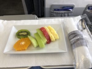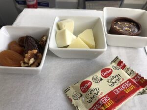 Beim Special Meal gab es zum Nachtisch Obst, dazu wurden nochmal Getränke abgefragt und Schokolade serviert.