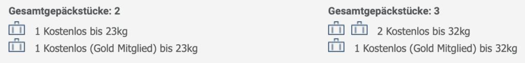 Daraufhin konnte ich direkt einen Sitzplatz in den vorderen Reihen kostenfrei reservieren, die Freigepäckmenge wurde entsprechend von einem Koffer mit max. 23kg auf zwei Gepäckstücke bis zu 32kg erweitert.