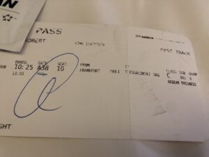 Überpünktlich sind wir in Thessaloniki gelandet. Wie immer stand dort ein eigener Bus für die Passagiere der Business Class bereit. Die Einreise erfolgte zügig, auf das Gepäck haben wir nur etwa fünf Minuten gewartet.