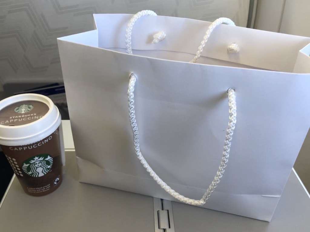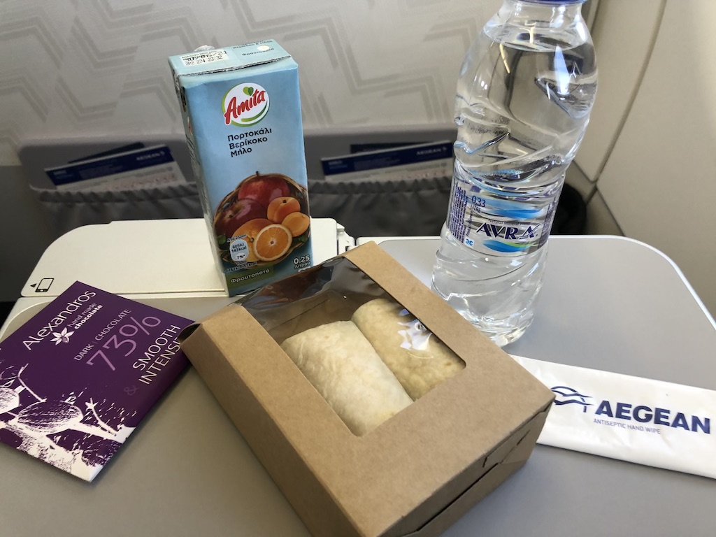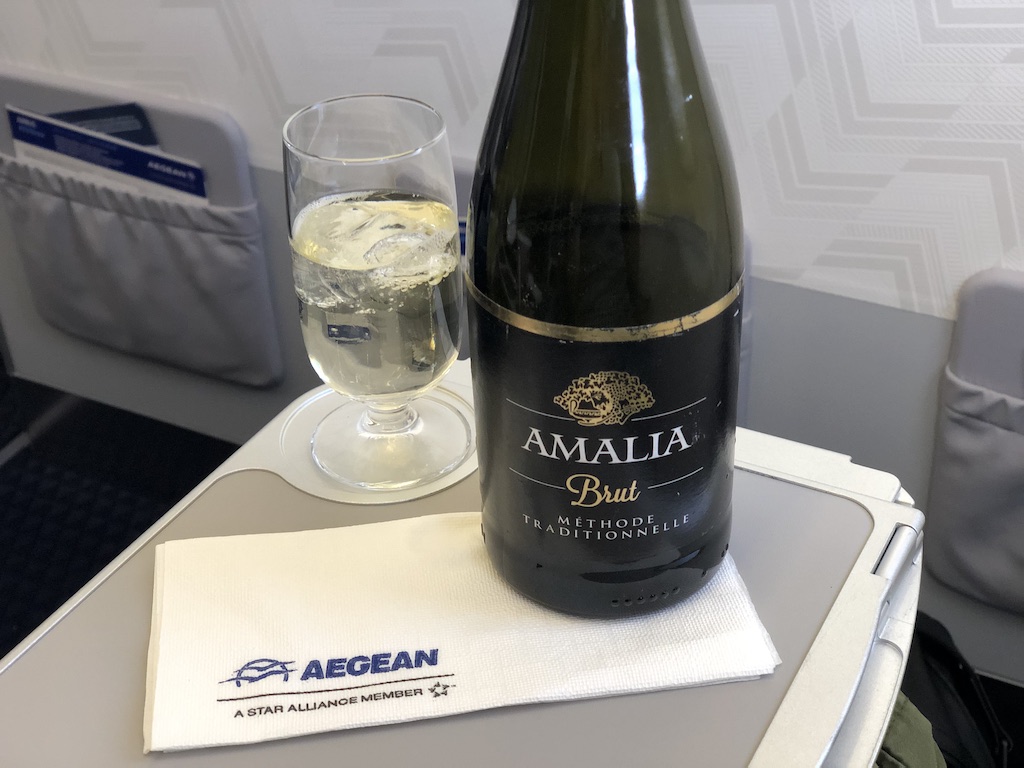 Positiv zu erwähnen ist die Espressomaschine an Bord. Darüberhinaus wurden auf diesem Flug am Morgen auch fertige Kaffee-Getränke von Starbucks serviert. Während des Fluges wurden immer wieder Getränke abgefragt. Weine werden jetzt in 0,2-Liter Fläschchen verteilt. Sekt aus Griechenland gibt es aus 0,375-Liter Flaschen, der uns direkt auf den Tisch gestellt wurde.