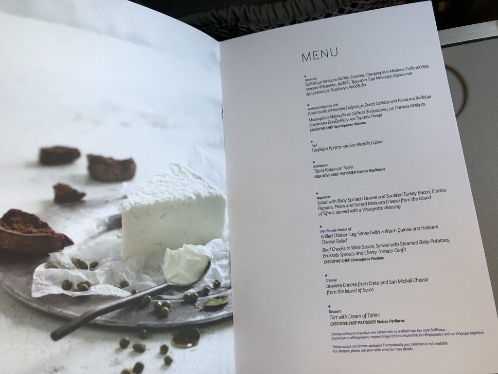 Aegean Airlines bietet dabei eine Auswahl aus mehreren griechischen Weinsorten an. Auf der Mittelstrecke konnte aus zwei verschiedenen Hauptgerichten ausgewählt werden.