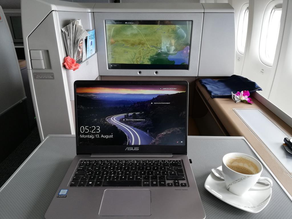 Ich muss ehrlich sagen, dass ich nicht genau wusste, was ich von der Air China First Class in der Boeing 747-8 erwarten sollte. Die Kabine wirkt offen und hell und ist dabei trotzdem recht privat. Der Sitz ist leider nicht perfekt, sei es die Einstellungen als auch die Polsterung. Die Damen im Service waren aber wirklich klasse. Man versuchte wirklich alles um den Gast zu verwöhnen und sich um diesen zu sorgen. Klar gibt es eine kleine Sprachbarriere, aber die beiden Mädels waren klasse. Wir haben uns beide sehr wohl gefühlt.