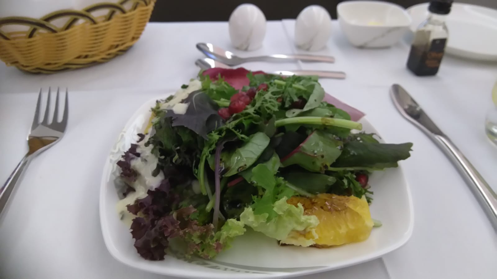 Die Qualität vom Essen war gut, die Auswahl hat gepasst. Von der Menge war es wirklich viel. Insgesamt war das Abendessen sehr solide und „bodenständig“. Man hat sich hier definitiv nicht verkünstelt. Für die First Class hätte e fast etwas mehr „Fancy“ sein dürfen. Auf der anderen Seite haben wir die Gerichte wie Kaviar und Hummer gar nicht probiert.