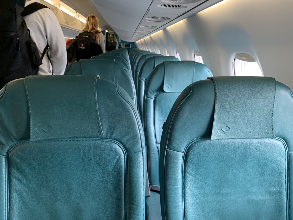 Der Embraer „Standardsitz“, welchen auch Air Dolomiti in der Economy Class verwendet, ist deutlich breiter und auch besser gepolstert, als die üblichen Sitze in dieser Flugzeugklasse der 100-150 Sitze. Auch die Sitze, welche zum Beispiel Lufthansa auf den Airbus A320 verbaut, sind deutlich unbequemer, als die Sitze in den Embraer 195.