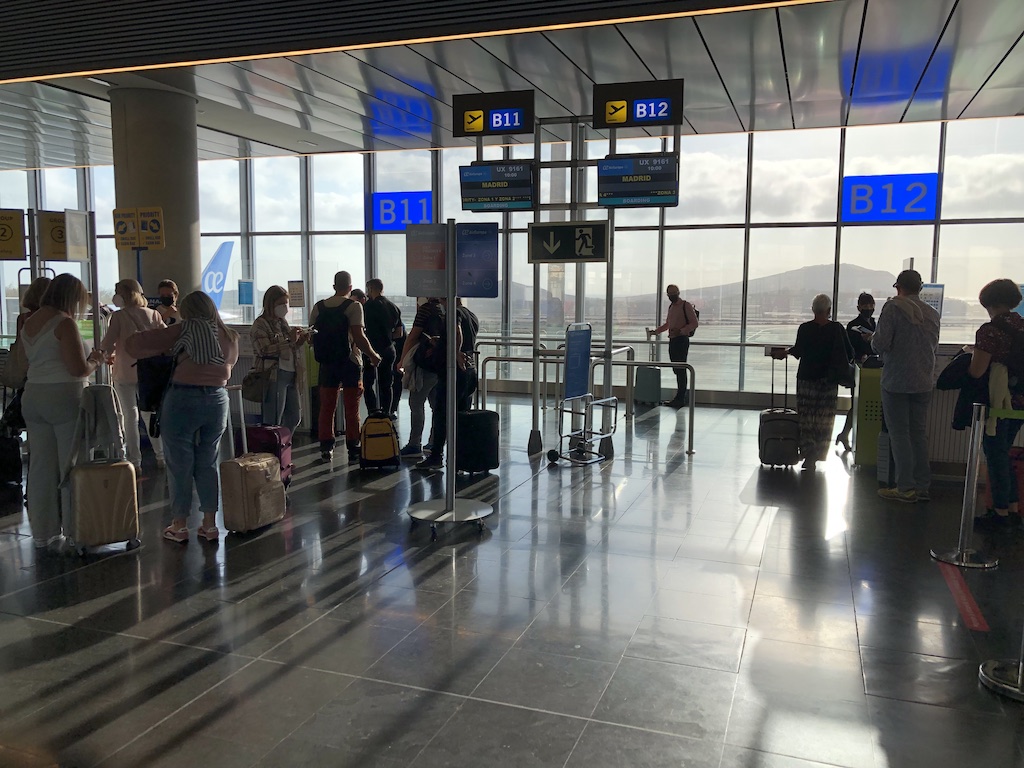 Am Flughafen Las Palmas waren vier Schalter für den Air Europa Flug nach Madrid offen. Ein Sky Priority-Desk für Statuskunden und Passagiere der Business Class, einer nur zur Gepäckaufgabe und zwei für die Economy Class. Diese waren nochmals unterteilt, einer für Gäste bis nach Madrid und der andere für Kunden mit Anschlüssen.