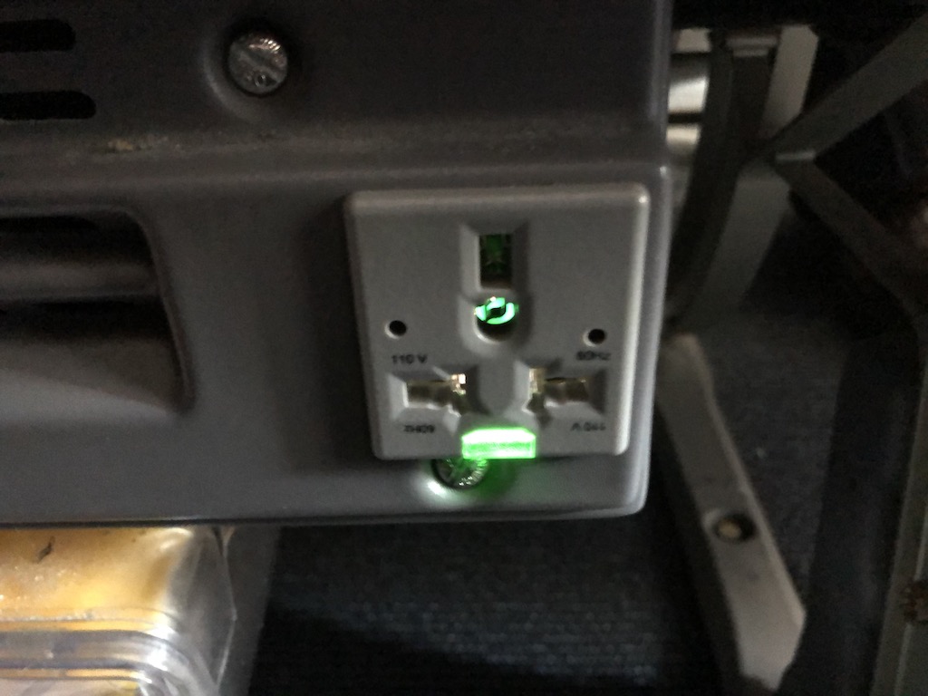 Die Rückenlehnen lassen sich auffällig weit nach hinten stellen, auf Langstrecken sicherlich ein Vorteil. Dennoch bleibt das Problem mit dem Bildschirm. Ansonsten war der Sitzabstand nicht gerade großzügig, wir waren jedoch zu zweit in einer Dreierreihe und konnten uns entsprechend ausbreiten- ein Glücksfall bei nur acht freien Sitzen.