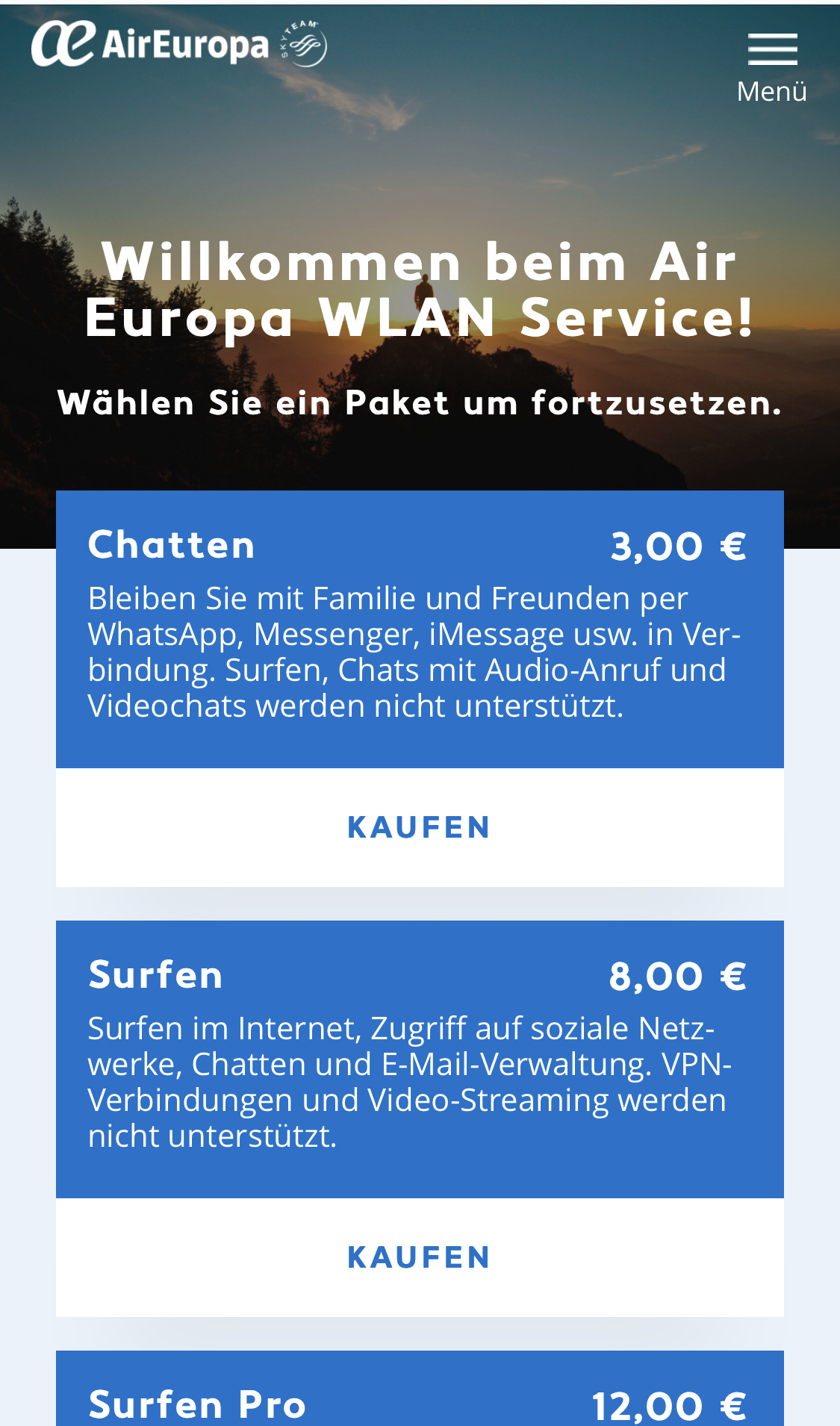 In der Luft wurde der auf den Buy on Board Service per Ansage hingewiesen und das Internet aktiviert. Die Preise sind mit 3€ für ein Messaging-Paket fair, einige Funktionen sind kostenfrei.