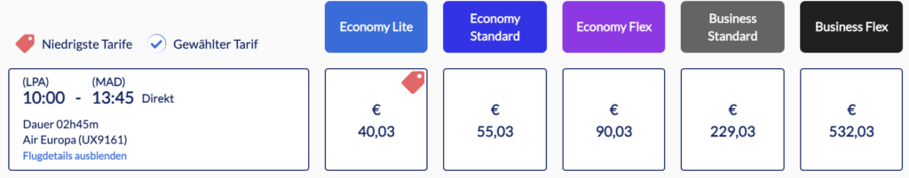 Air Europa bietet regelmäßig einen Flug innerhalb von Europa mit Langstreckengerät an. Die Strecke von und nach Gran Canaria wird zweimal täglich bedient, dabei wechseln sich Boeing 787 und 737-800 ab. Rechtzeitig gebucht sind die Preise niedrig, es werden verschiedene Tarife angeboten. App und Check-In könnten etwas benutzerfreundlicher sein.