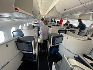 Air France A350 Economy Class | Blick in die Business Class