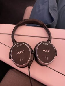 In der Business Class steht ein breites Angebot an Filmen, Serien, Musikalben usw. zur Verfügung. Es ist identisch mit den Angeboten in der Economy Class und der Premium Economy. Nur der Bildschirm ist größer. Im A330-200 ist der Bildschirm übrigens leicht schräg montiert und lässt sich auch nicht ausfahren oder leicht nach vorne ziehen, um die Schrägstellung auszugleichen. Das ist recht ungünstig. Nicht, dass die Filmqualität stark leiden würde. Die leidet am stärksten darunter, dass man im Flugzeug sitzt und nicht im (Heim)kino.