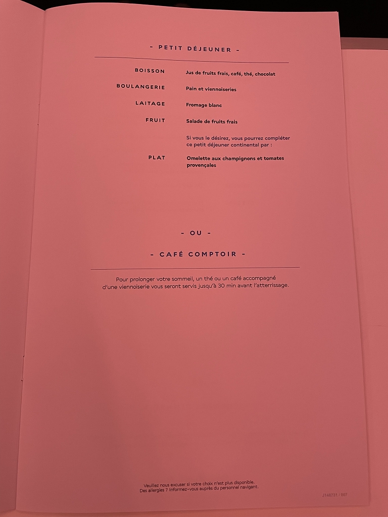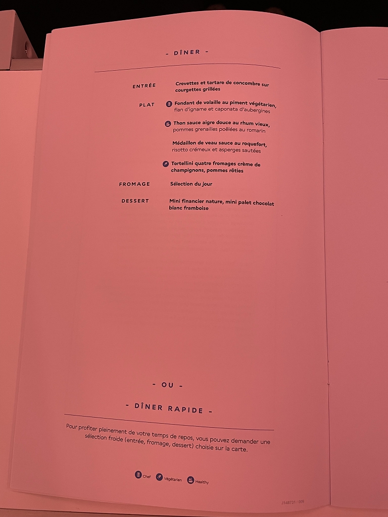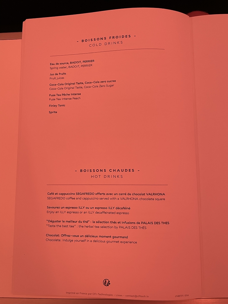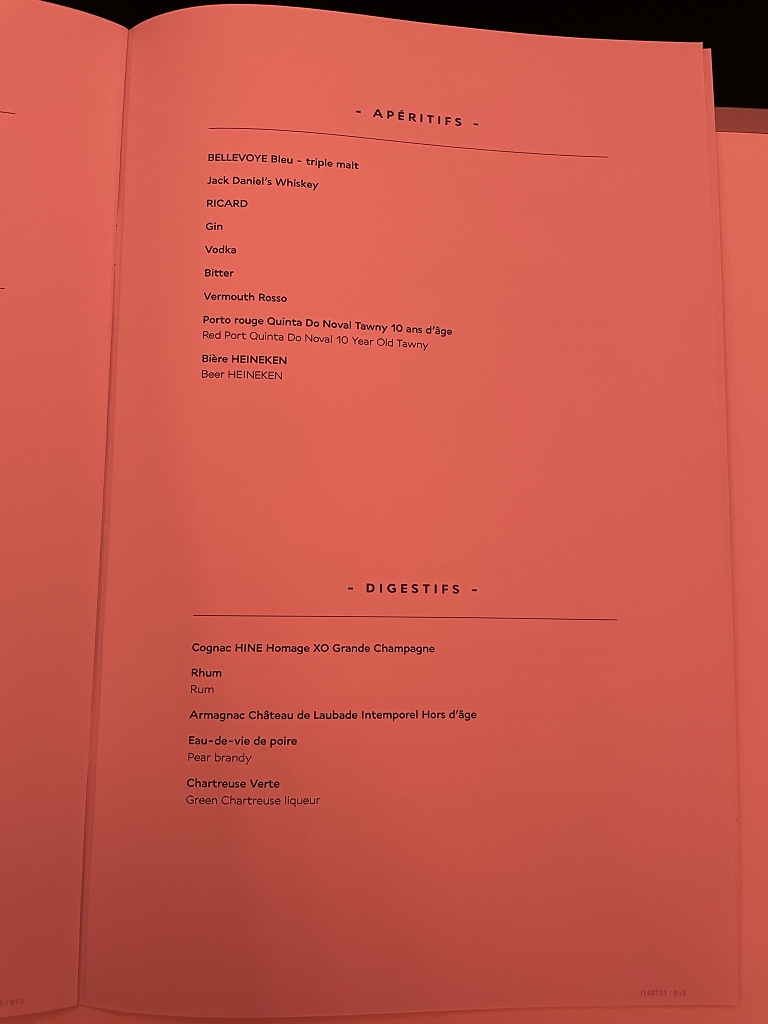 Der Service kam mir mäßig vor. Da könnte man mit freundlicher Ansprache und etwas mehr Enthusiasmus viel erreichen. Vielleicht wären auch weniger Berührungsängste mit nicht frankophonen Reisenden ein weiterer Vorteil. Denn irgendwie scheint zu gelten, dass ein Gast mit schlechtem Französisch immer noch einen etwas besseren Service bekommt, als der Passagier mit gutem Englisch.
