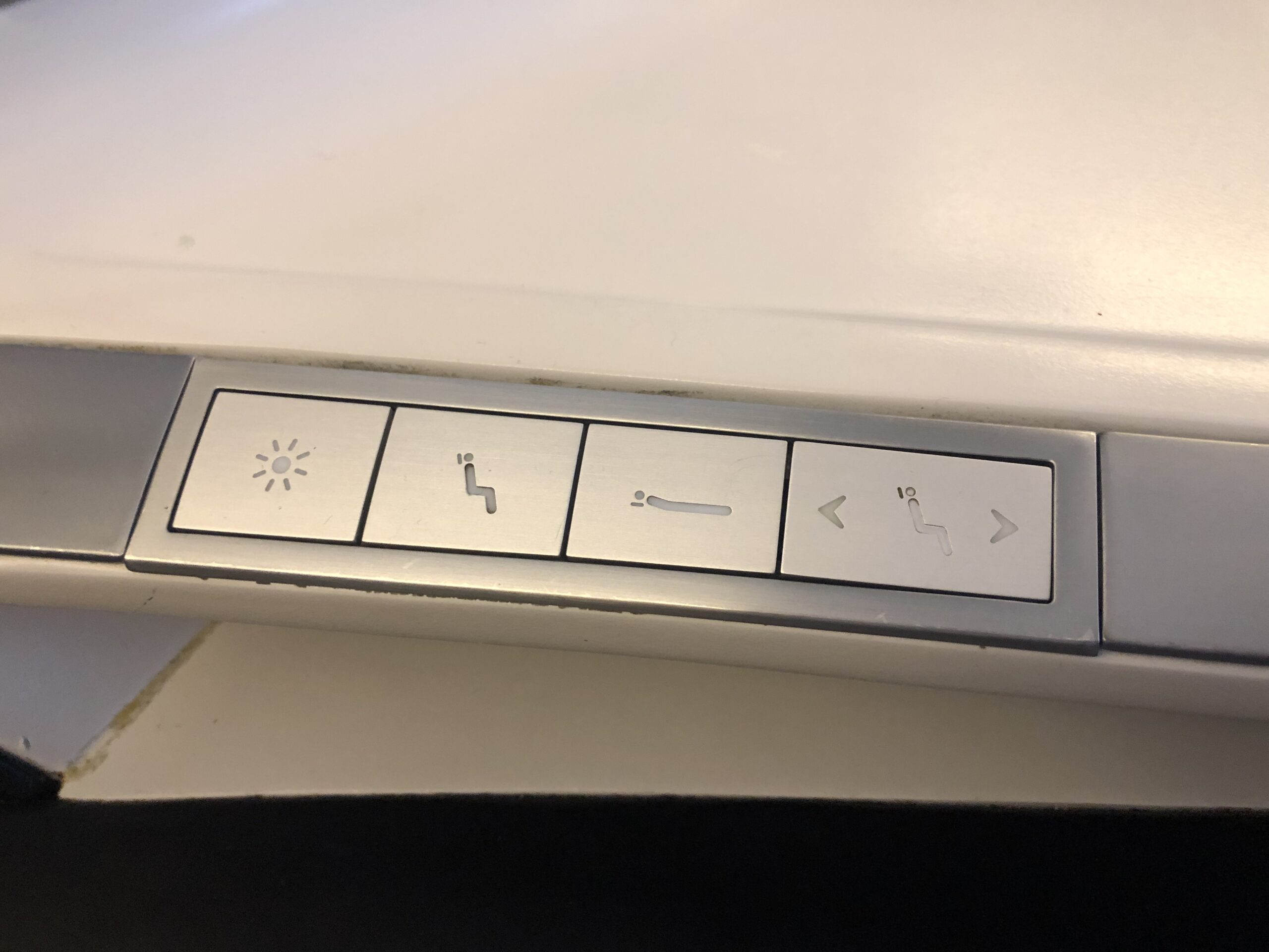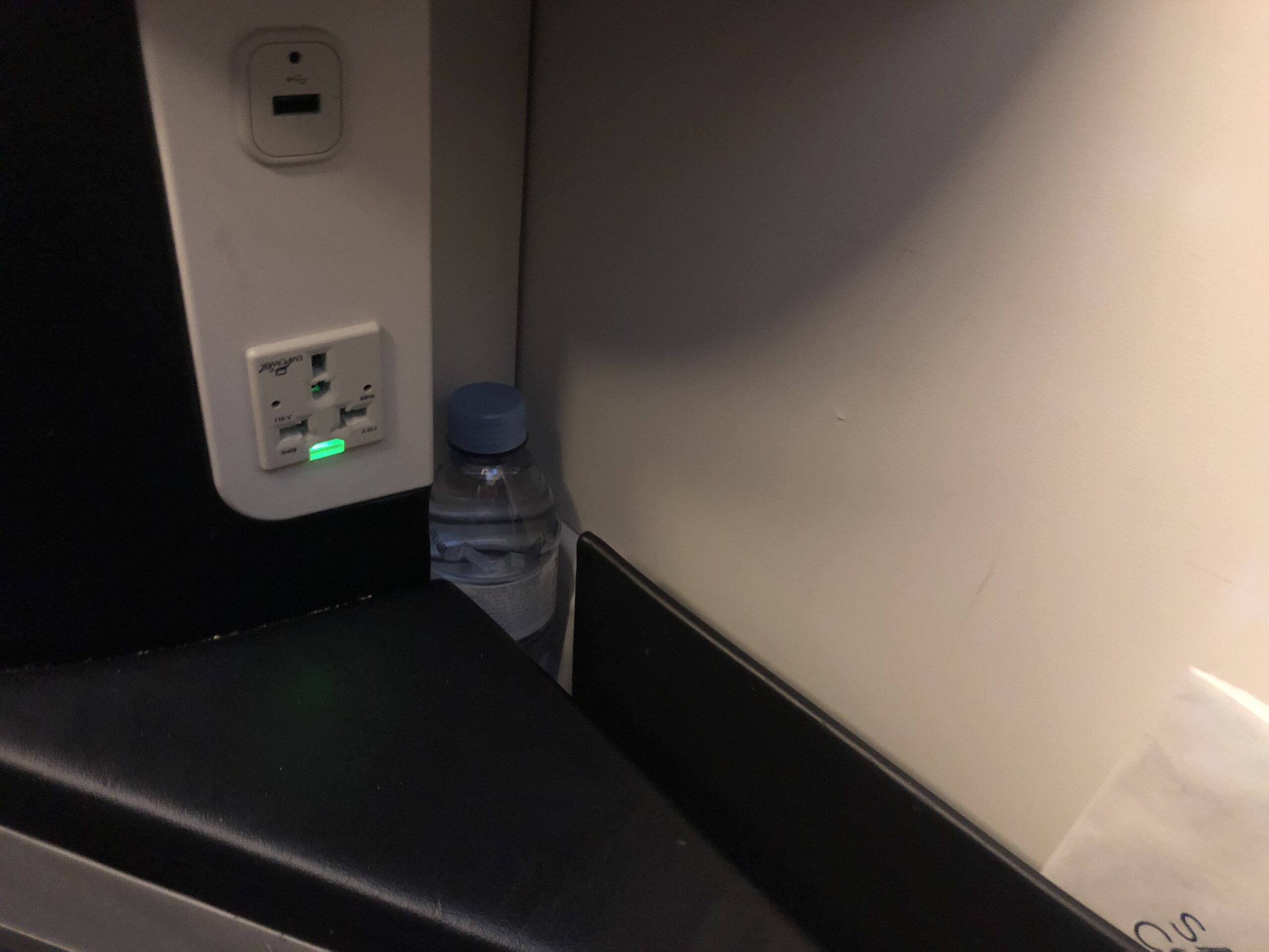 Leselampe, Steckdose, Fernbedienung und Sitzverstellung sind direkt am Platz, in einer Ecke versteckte sich auch eine Wasserflasche.