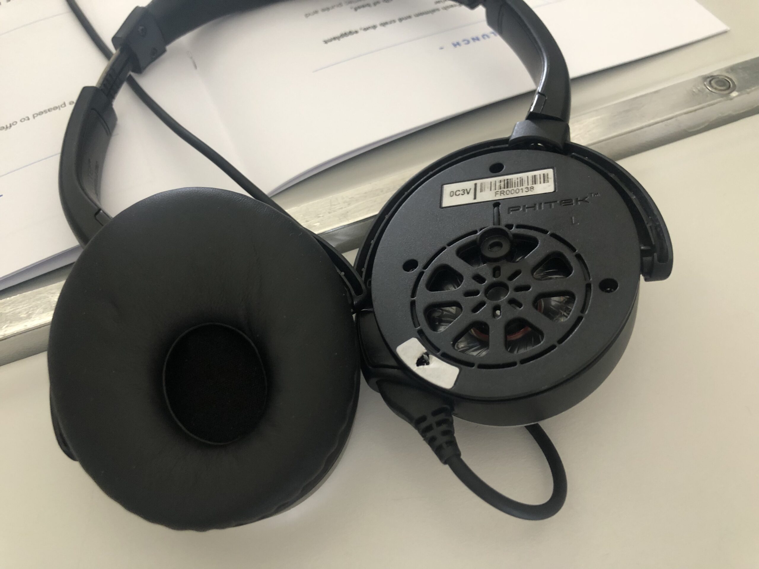 Irgendwann gelang es einer Mitreisenden den Schwammüberzug mit einem Flaschenöffner über die Hörmuschel zu ziehen und alle Beteiligten waren glücklich.