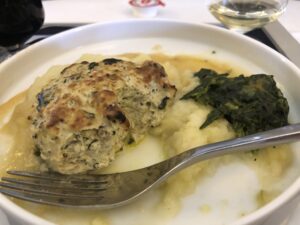 Zur Wahl standen Rühreier sowie eine kalte Platte, nichts Herausragendes. Der Kapitän meldete sich und kündigte den Landeanflug an, wir sollten etwa 10 Minuten nach der geplanten Zeit am Gate ankommen.