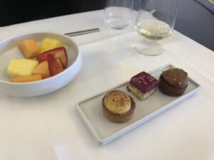 Das Flugzeug war zwar schon etwas älter und die Einrichtung nicht ganz up to date. Eine motivierte Crew bereitete uns aber ein schönes Flugerlebnis. Das Essen hatte zwar einige Schwächen aber in einem Flugzeug sind die Möglichkeiten dann doch etwas begrenzt. Dennoch könnte man also französische Airline einen würzigeren Käse oder besseres Croissant auftischen.