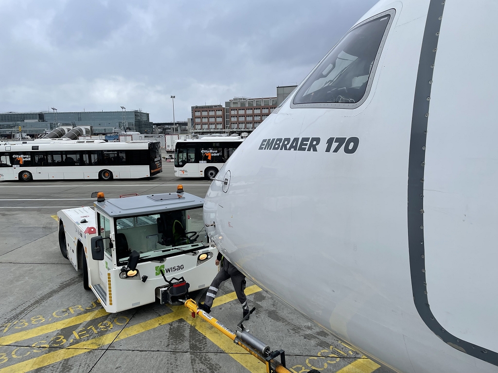 Vom Terminal ging es dann mit einem Bus auf das Vorfeld zu der kleinen Ebraer. Während der Busfahrt meldete sich „Ready to Fly“ bei mir. Man habe es nicht geschafft, die Dokumente rechtzeitig zu prüfen.