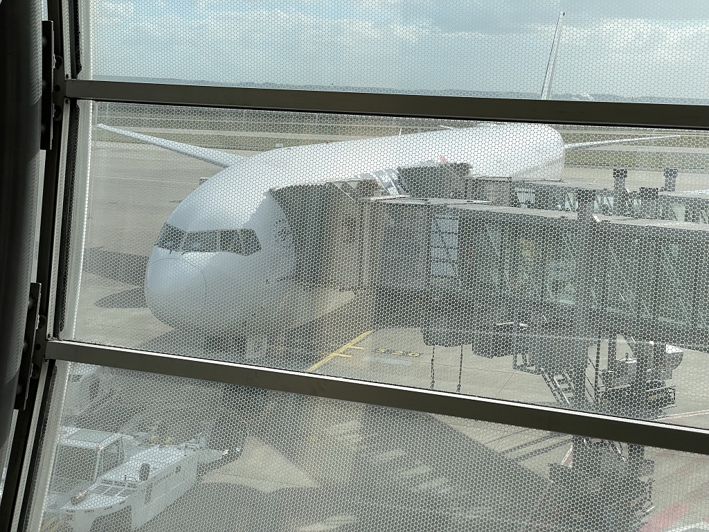 Da ich in Paris “nur” umsteigen musste, entfällt die Beschreibung des Check-Ins. Vielleicht ein Wort zum Umstieg in Paris: Die Wartezeiten an den Sicherheitskontrollen vor den Eingängen der einzelnen Gate-Bereicht im Terminal 2 können unerwartet lang ausfallen. So war es auch an meinem Flugtag. Daher erreichte ich aufgrund der etwas knappen Umsteigezeit das Gate 5 Minuten vor Boardingende und betrat als letzter Fluggast die Premium Economy.