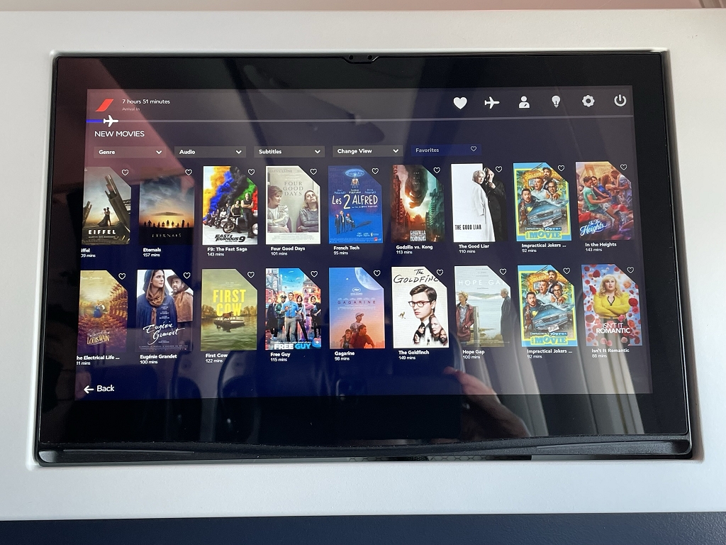 Zur Unterhaltung der Passagiere legt Air France ein Bordmagazin aus. Das ist jedoch nicht halb so interessant wie das, was sich auf dem 11 Zoll Screen vor der eigenen Nase abspielt. Hier trägt Air France dick auf und bietet über 250 Filme, dazu noch Serien, TV-Shows, Musikalben. Daneben gibt es noch die Air France Play App, in der man sich nach Anmeldung mit Name und Buchungscode Zeitschriften und Magazine auf sein bevorzugtes Device herunterladen kann.