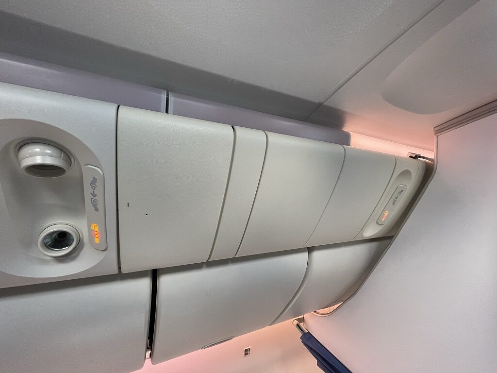 Die Kabine hat 28 Sitzplätze, die in einer 2-4-2- Konfiguration angelegt sind. In der hintersten Reihe (8) gibt es nur Mittelsitze. Bei den Bulkhead Sitzen ist es ganz schön, dass die Monitore fest an der Wand verbaut sind. So haben die Sitze dieselbe Sitzbreite und man muss nicht umständlich Monitore unter dem Sitz verstauen. Aus meiner Sicht ist das ein Pluspunkt.