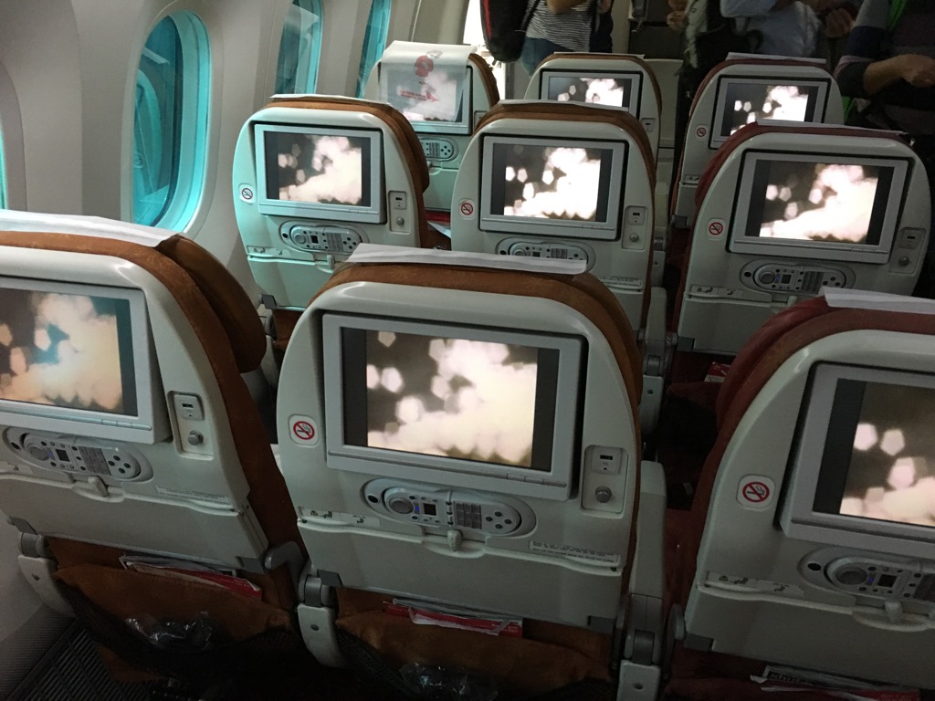 Die Sitze waren, wie man es von einem modernen Flugzeug erwartet, ausreichend bequem und mit einem eigenen Entertainment Bildschirm ausgestattet. Leider hat mein Bildschirm nicht funktioniert und lief auch nach zwei Neustarts nicht sauber. Ich habe daher auf meinem Laptop den Flug über gearbeitet, geschlafen und die Karte bei meinem Sitznachbarn bewundert. Wirklich motiviert das Problem für mich zu lösen war man an Bord aber auch nicht.