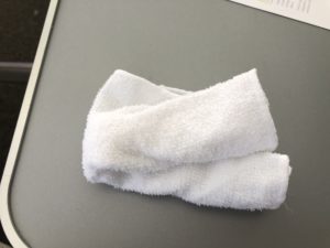 Vor dem Aperitif gab es noch heiße Tücher zur Erfrischung, die meisten Gesellschaften haben diesen Schritt als erstes beim Service in Zeiten der Pandemie gestrichen.