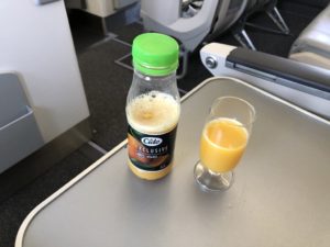 Noch am Boden wurden mir Saft und Wasser angeboten. Das Boarding war zügig abgeschlossen, obwohl die Maschine zu gut zwei Dritteln ausgelastet war. Parallel zu dem kurzen Sicherheitsvideo verliessen wir überpünktlich die Position und hoben wenige Minuten später ab.
