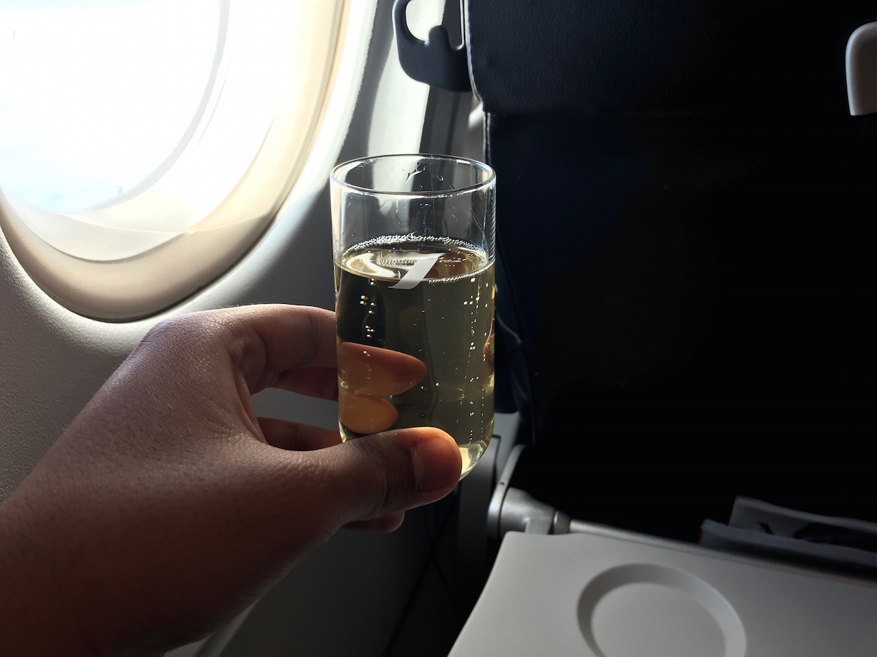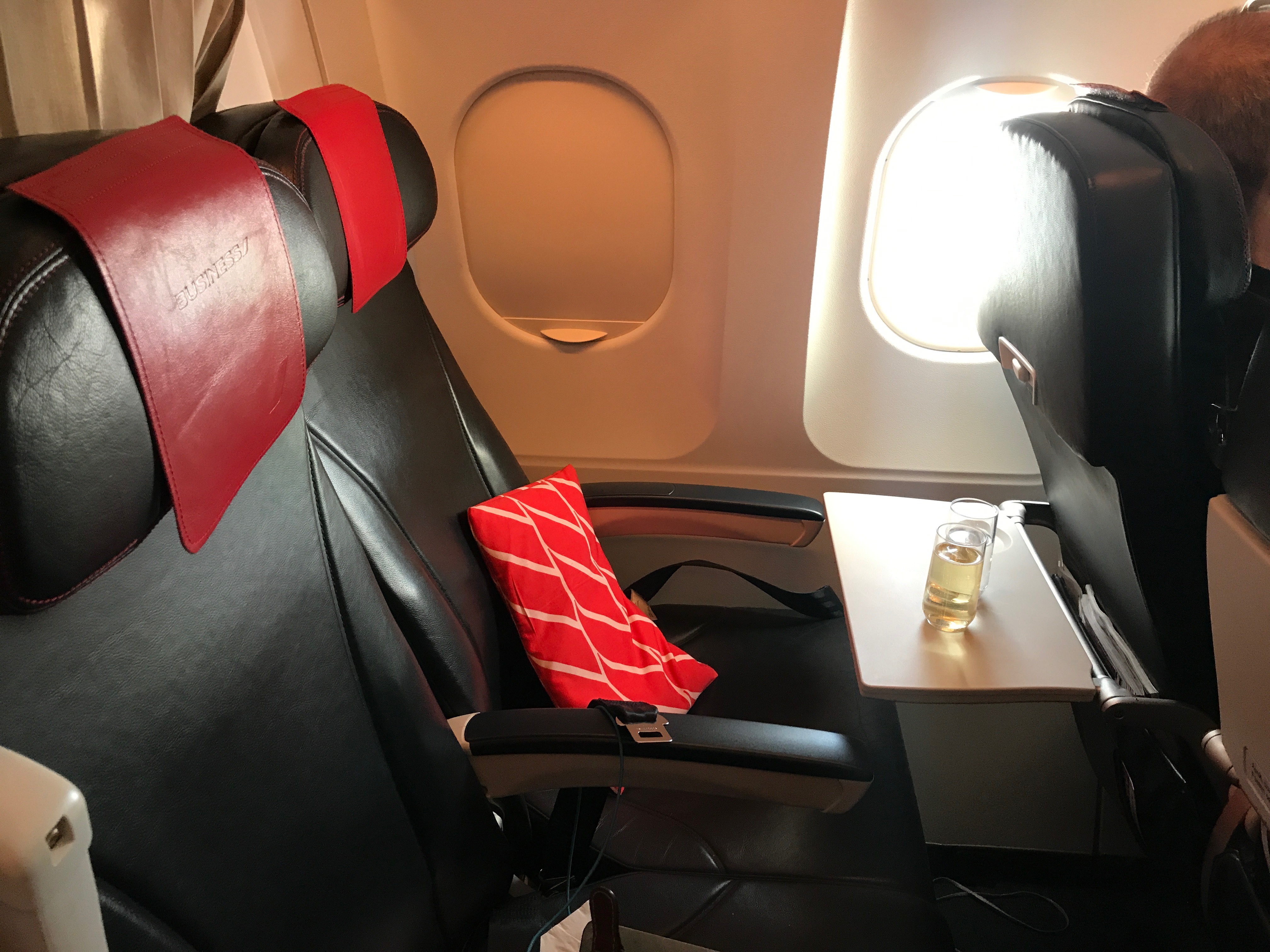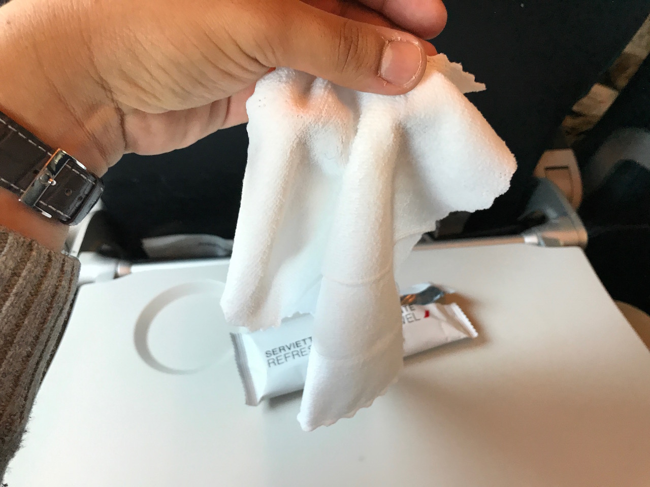 Meiner Meinung nach setzt Skyteam den Boarding-Prozess (zumindest für Statuskunden) mit Abstand am besten um. Selbst beim Bus-Boarding gibt es separate Sky Priority Schlangen. Zuerst dürfen First-, Business- und Premium Economy Class Gäste mit den Skyteam Elite Plus Kunden an Board gehen. Nach der ersten Runde dürfen Skyteam Elite Gäste über die Sky Priority Schlange boarden, gefolgt von allen anderen Gästen. Somit kann man entspannt sein Handgepäck in den Ablagefächern verstauen und muss diese nicht weiter hinten, oder gar zum Verladen abgeben. In der Business Class wurden vor dem Start lediglich verpackte feuchte Tücher gereicht, aber kein Willkommensgetränk.
