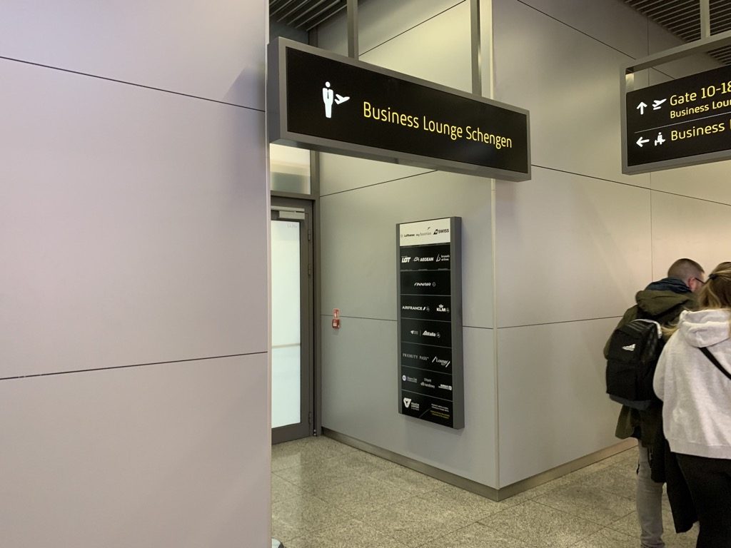 Der Eingang zur Airport Business Lounge Krakau ist recht unscheinbar, aber man kann ihn vom Check-In binnen fünf Minuten, inklusive Durchlaufen der Sicherheitskontrolle erreichen, was natürliche extrem angenehm ist.