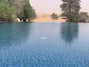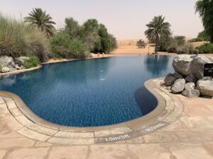 Im Al Maha gibt es auch einen öffentlichen Pool, welcher während unseres Aufenthaltes aber immer unbesucht war. Trotzdem sicher eine Option, wenn man auch mal „richtig“ schwimmen möchte. Der Pool befindet sich am Gym / Spa-Bereich.