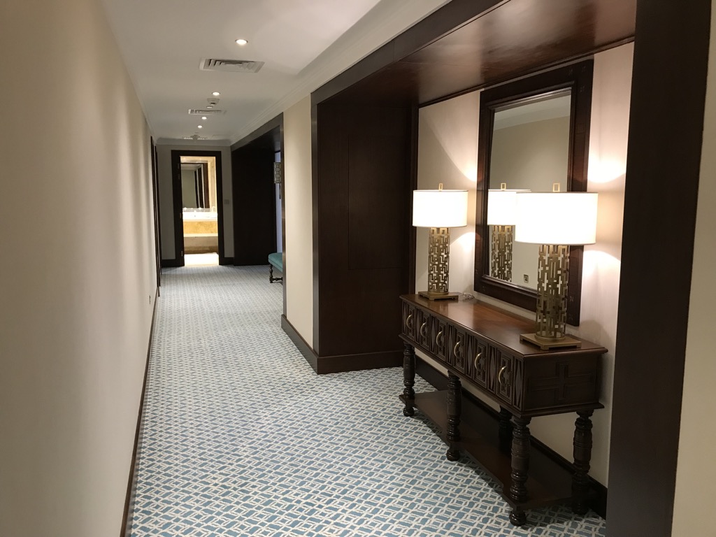 Am Check-In Schalter wurden wir sehr herzlich begrüßt. Die Angestellten waren vorbereitet und unsere Daten befanden sich bereits im System, sodass der Check-In Vorgang sehr schnell abgeschlossen war. Wir bekamen die Zimmerkarten und den Wi-fi Code, sowie gekühltes Mineralwasser. Uns wurde angeboten uns zum Zimmer zu begleiten, was wir dankend annahmen, denn so konnten wir gleich erfahren wo sich z.B. Pool, Gym und andere Spots des Hotels befanden.