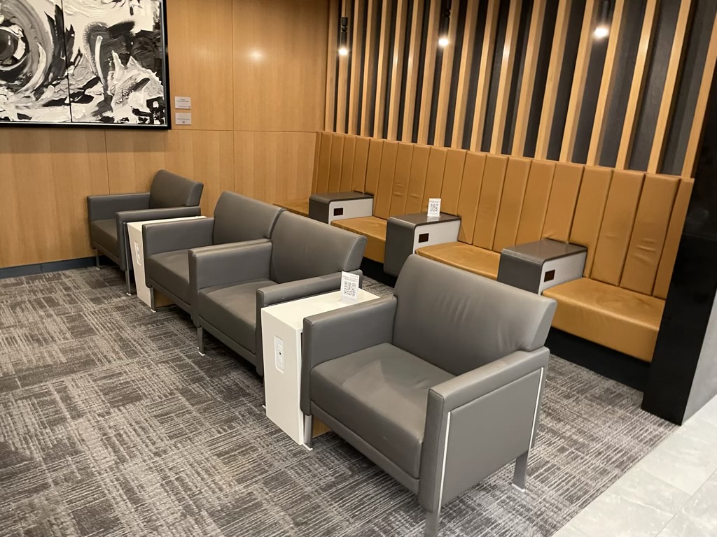 Durch die Lage auf der Empore über den Gates, ist der Club auch sehr hell und angenehm. Dabei findet man im vorderen Bereich der Lounge eine Reihe verschieden gestalteter Sitzmöglichkeiten, welche ich persönlich sehr schön gestaltet finde.