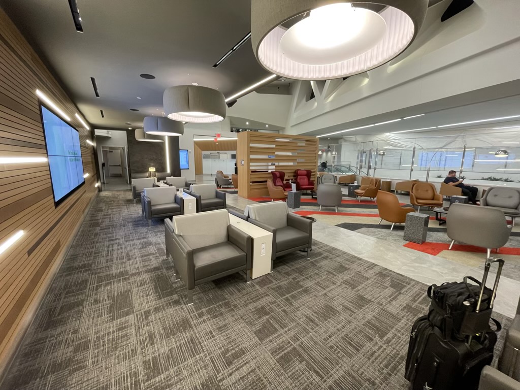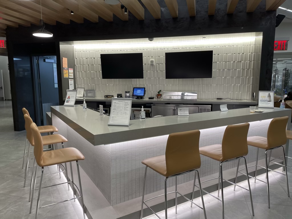 Der American Airlines Admirals Club am neuen Airport in La Guardia ist natürlich auch nagelneu und erstrahlt entsprechend in einem modernen Design. Eröffnet wurde er erst im Dezember 2021 und entsprechend sieht man hier wirklich noch keine Abnutzungserscheinungen.