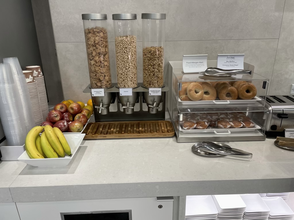 Ich habe den Admirals Club in La Guardia am Morgen besucht und entsprechend wurde hier Frühstück angeboten. Das Angebot war allerdings recht überschaubar und es gab ein Kontinentales Frühstück, wie man es aus US Hotels kennt.