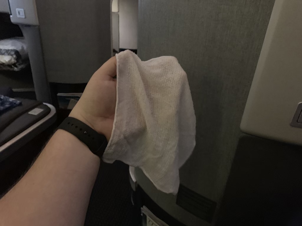 Kaum hatte das Flugzeug eine Höhe von 16.000 Fuß erreicht, durften die Flugbegleiter aufstehen und haben mit dem Service begonnen. Keine 15 Minuten nach dem Start wurden bereits warme Tücher verteilt. Kurz darauf wurden auch die ersten Getränke serviert, wie bei American Airlines üblich mit warmen Nüssen.