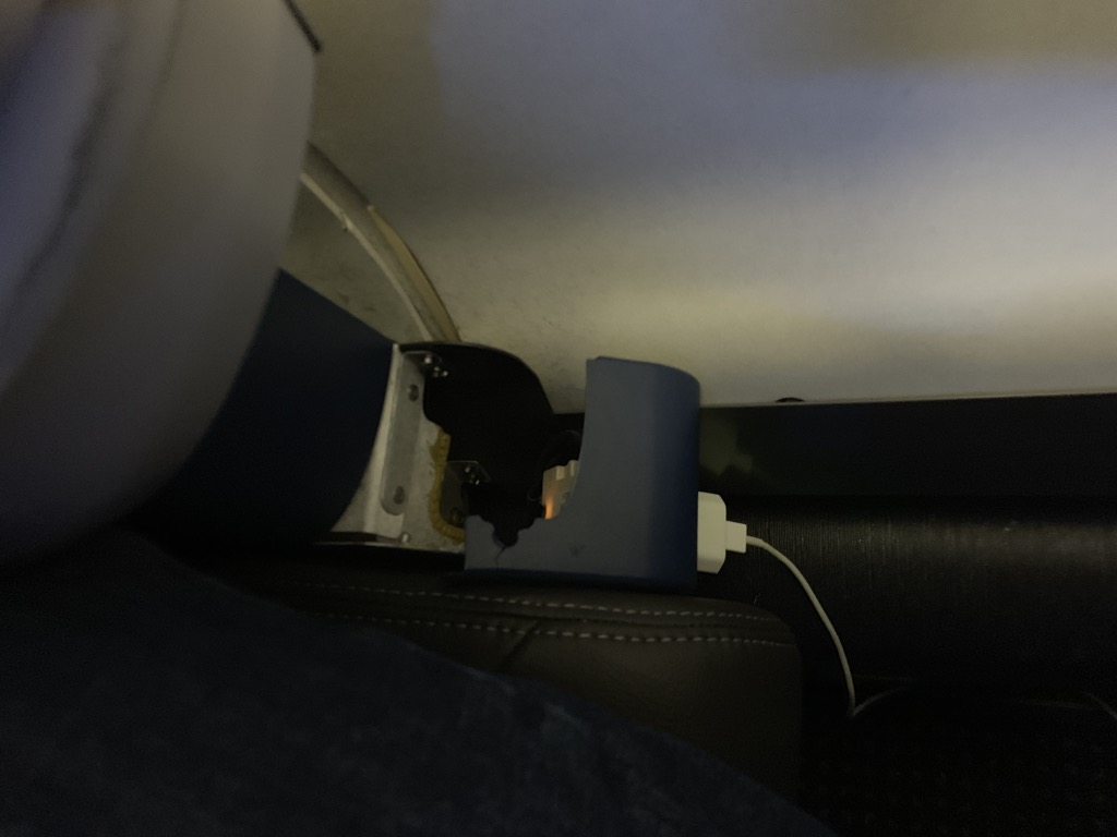 Auch wenn die Kabine des Canadair Jet auf diesem Flug einen sehr guten Eindruck gemacht hat und generell in einem guten Zustand war, war interessanterweise die Steckdose an meinem Sitz kaputt, was sehr unfein ist und eigentlich zumindest provisorisch mit Power Tape fixiert werden sollte.