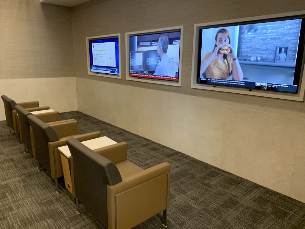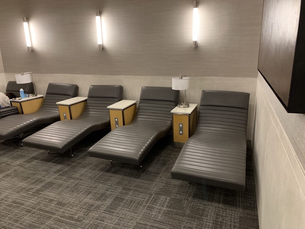 Im hinteren Bereich der Flagship Lounge befindet sich auch ein TV Zimmer sowie ein quiet room mit einigen Liegen.