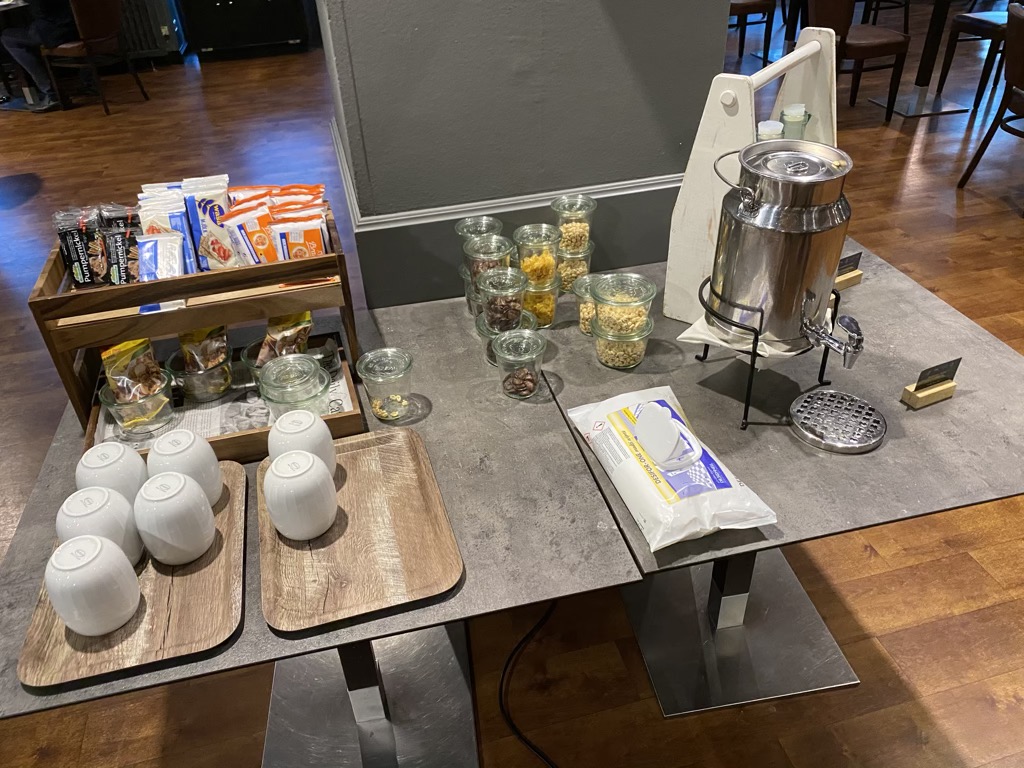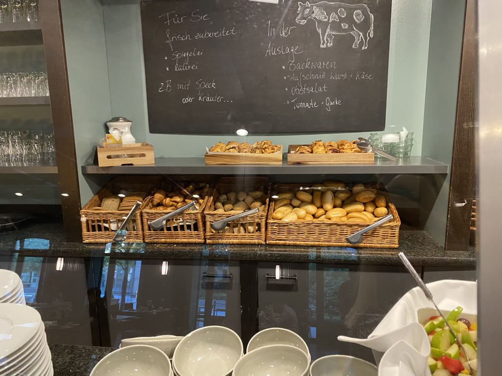 Nach einer erholsamen Nacht begab ich mich auf den Weg zum Frühstück. Bereits beim Check-In wurde ich nach einem gewünschten Zeitfenster für das Frühstück gefragt (Covid-19 Maßnahme).