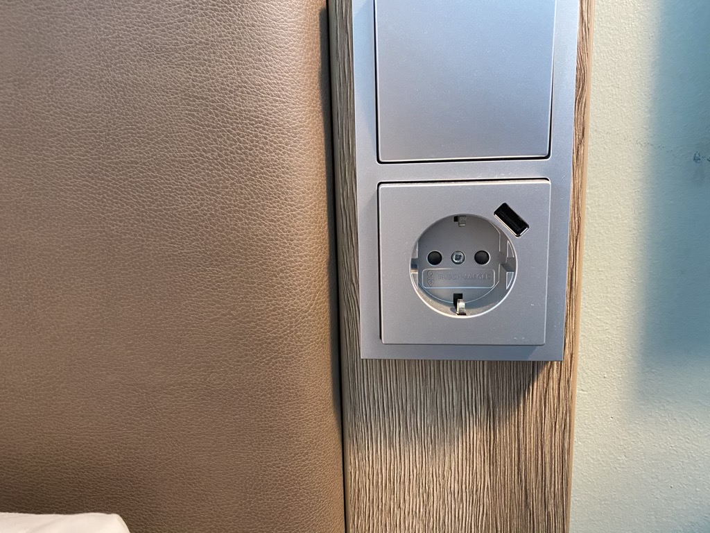 Zentrales Element des Zimmers war das Bett, welches zwar ausreichend groß war, aber aus zwei Einzelbetten bestand, die nicht miteinander verhakt waren. Für mich alleine kein Problem, aber zu zweit finde ich solche größenwerdende Lücken immer sehr störend. Unabhängig davon habe ich sehr gut geschlafen und mich vor allem über die Leselampen und Steckdosen inkl. USB Anschluss direkt neben dem Bett gefreut.