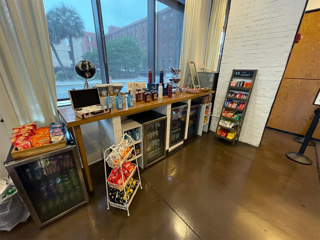 Hinter der Rezeption befindet sich ein kleiner Hotelmarkt. Dort gibt es Snacks sowie gekühlte Getränke (auch mit Alkohol). Die Preise sind frei erfunden, weichen aber von Supermarktpreisen deutlich nach oben ab.