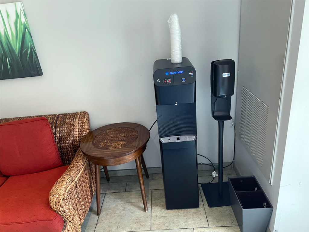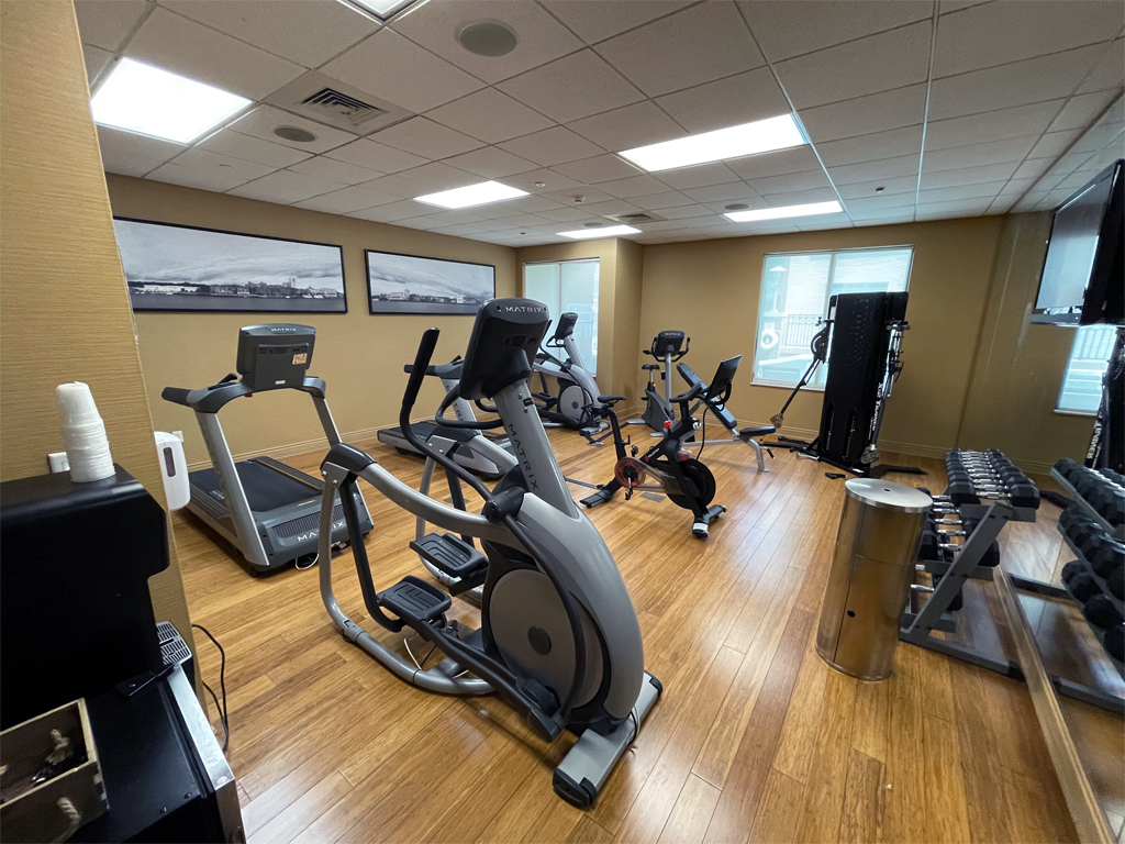 Im ersten Stock gibt es einen Fitnessraum. Dort gibt es ein paar Cardiogeräte, Kurzhanteln und einen Wasserspender.