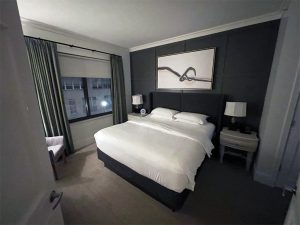 Wie der Zufall so spielt hatte ich beim Check out dieselbe Dame wie beim Check in. Die Rechnung sah jedoch ganz anders aus, als gedacht denn: Das Valet Parken konnte sehr wohl auf das Guthaben angerechnet werden. Also gab ich als erstes die überteuerten Getränke und Schokoriegel aus dem Markt zurück. Das Verhalten der Dame wollte ich nicht noch damit belohnen, dass ich im Hotel zu Mondpreisen einkaufe. Aber nicht nur das Parken wurde auf das Guthaben angerechnet – auch das Trinkgeld vom Abendessen und die Steuern. Nach meinem ausgiebigen Abendessen mit der leichten Magendehnung habe ich dann im Endeffekt noch draufgezahlt. Das Abendessen war es jedoch wert und auch der ausgebliebene Stress beim Parken des Autos.