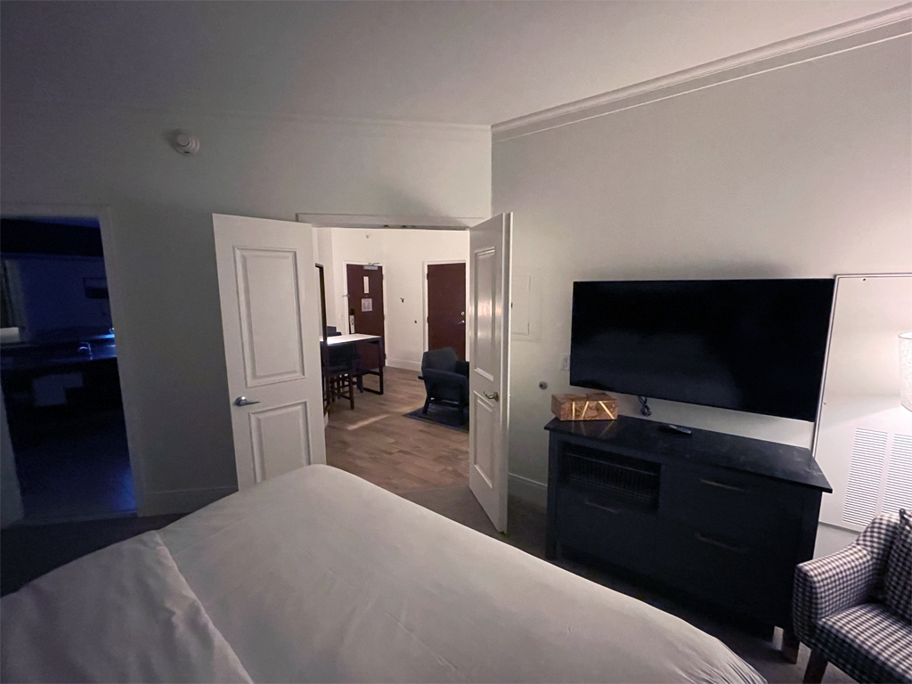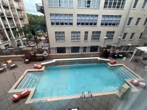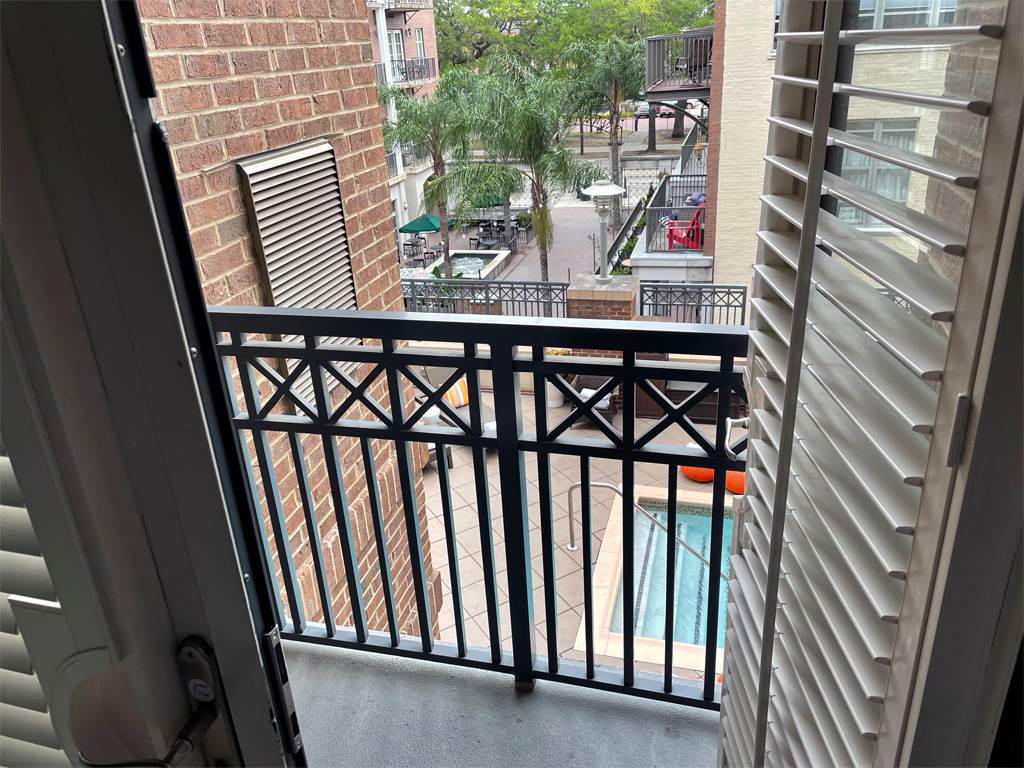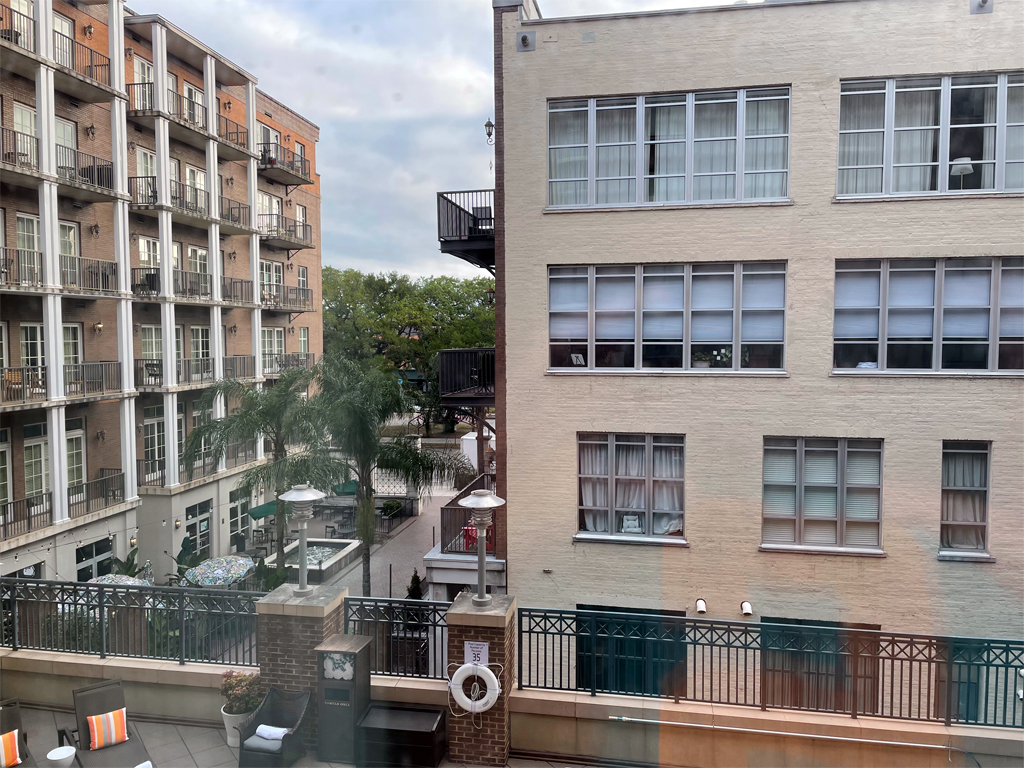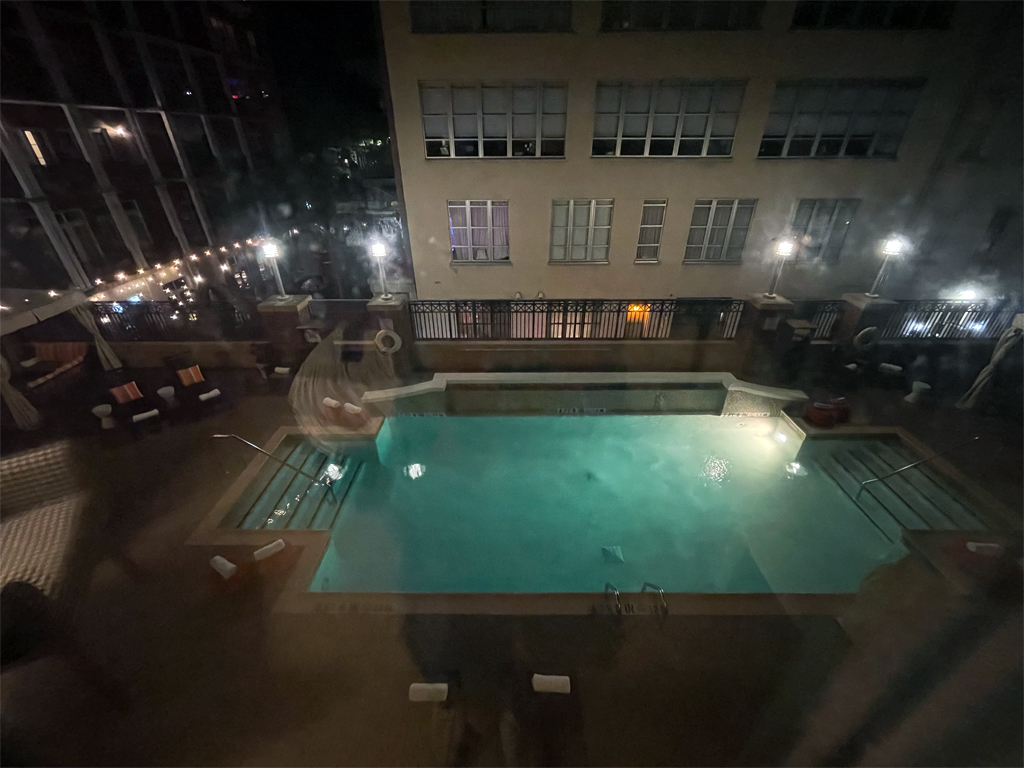 Meine Suite lag im dritten Stock (amerikanische Zählweise) mit Blick auf den Pool. Damit war ich vom Ellis Square abgewandt und war vor Lärm durch Feiernde sicher.