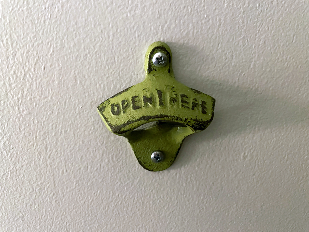 Ganz witzig ist der Flaschenöffner, der in der Küche an die Wand montiert ist.