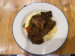 Das Abendessen findet im Hotelrestaurant „…“ statt. Es gibt eine Karte, die stark von der regionalen Küche der letzten Jahrhunderte beeinflusst ist. Alle Speisen, die ich bestellte, waren lecker. Und wahnsinnig kalorienreich. Alleine das Stück Kuchen zum Dessert hat genügend Kalorien für eine ganze Mahlzeit.