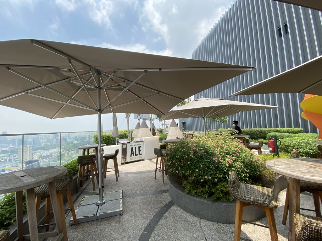 Ein weiteres Highlight war die Dachterrasse auf Level 39 mit einem 360 Grad Ausblick über Singapur. Während tagsüber fast nie jemand anzutreffen war, verwandelte sich die da angesiedelte Bar Mr. Stork am Abend zum Treffpunkt von Singapurs Bewohnern und vereinzelt Hotelgästen.